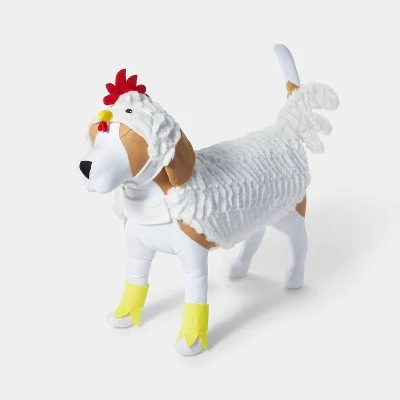 Your furry friend will look cuter than ever this Halloween wearing this Full-Body White Chicken Cat and Dog Costume from Hyde & EEK! Boutique™. Designed to look like a chicken, this cute costume features faux feathers and a detached headpiece adorned with eyes, a yellow beak and a red comb. Plus, it also comes with webbed feet accents in yellow to complete the look. Made from soft, lightweight fabric, it features hook-and-loop closures along the neck and chest for secure wear and easy on and off.