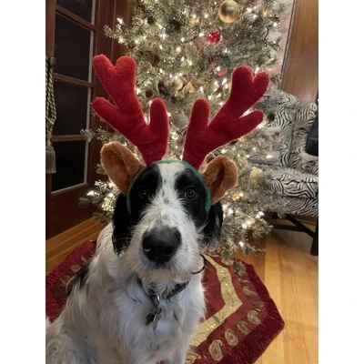 Stretches from 4″ to 8″ wide in diameter. Good for large dogs. 7″ tall red plush reindeer antlers. Fuzzy fabric ears and headband for dog’s comfort. Elastic chin strap to help keep on your dog. Silly & fun way to keep your dog involved in holiday pictures.