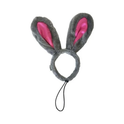 - 7″ tall gray plush bunny ears with pink satin. Comes with a bunny tail.