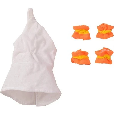 - Costume white ghost hat with cape collar; matching yellow and orange cuffs for your family’s furry best friend