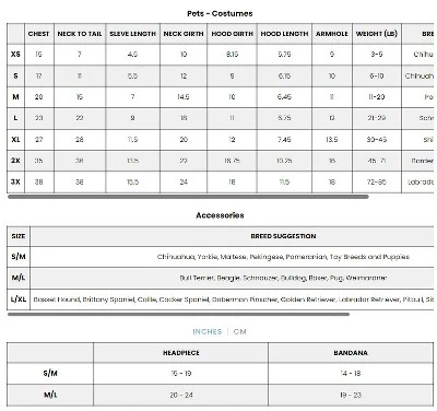- Pets subtype: Pet Full Body Costumes, Pet Costume Set