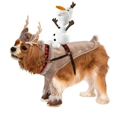 Turn your furry friend into a cute and cuddly reindeer this Halloween when you dress them up in our Pet Frozen Sven Costume. If you love the Frozen movies, then you’re going to absolutely love seeing your dog all decked out as Kristoff’s reindeer bud, Sven. Featuring a step in ride on Sven costume with plush, your doggy will cuter than ever wearing this one. Buy yours today and go make this Halloween a real Frozen night to remember!